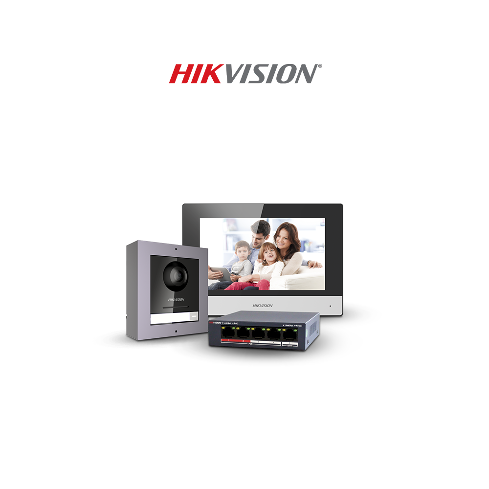 * Ideal para villa o casa, solo un botón de llamada * DS-KD8003-IME1/Superficie x1 * DS-KH6320-WTE1 x1 * Conmutador PoE estándar de 4 puertos x1 * Tarjeta TF de 16GB x1 * Adaptador de fuente de alimentación
